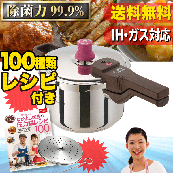 価格: 7,980円 レビュー評価:4.49 レビュー数:148 infomation■ 前バージョンとの変更点更新日:2017年11月06日 変更点:本体型番の変更・本体取っ手部分の変更・本体サイズ変更・本体付属品の変更■ 商品説明・2?3人用のご家族にぴったり。フタを裏返して収納で片付け上手。 ・便利な 「なかよし家族の圧力鍋レシピ100」本付き ・蓋を裏返して収納できるので、鍋にニオイがこもりません。 ・カンタン!ボタン操作なしのワンタッチ開閉です。 ・アップハンドルだから、持ちやすく、熱くなりにくくなっています。 ・ガスレンジはもちろん、200V電磁調理器対応■ 4つの安全設計【見やすいフロート式安全装置とステンレス製大口径安全弁】 見やすいピンク色のフロート式安全装置は、圧力のかかりだしがわかりやすく、上にあがるとふたを開けることができなくなるので安全です。新開発の大口径安全弁には日本製部品を使用し、圧力が上がりすぎるのを防ぎます。 【ノズルフ (更新日時:2017/12/18 13:08) Supported by 楽天ウェブサービス |